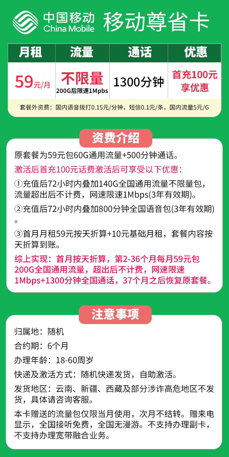 该套餐付费办理,支付的费用为办卡手续费,不含话费,办理成功后不支持任何理由的退款申请,介意请勿下单!
